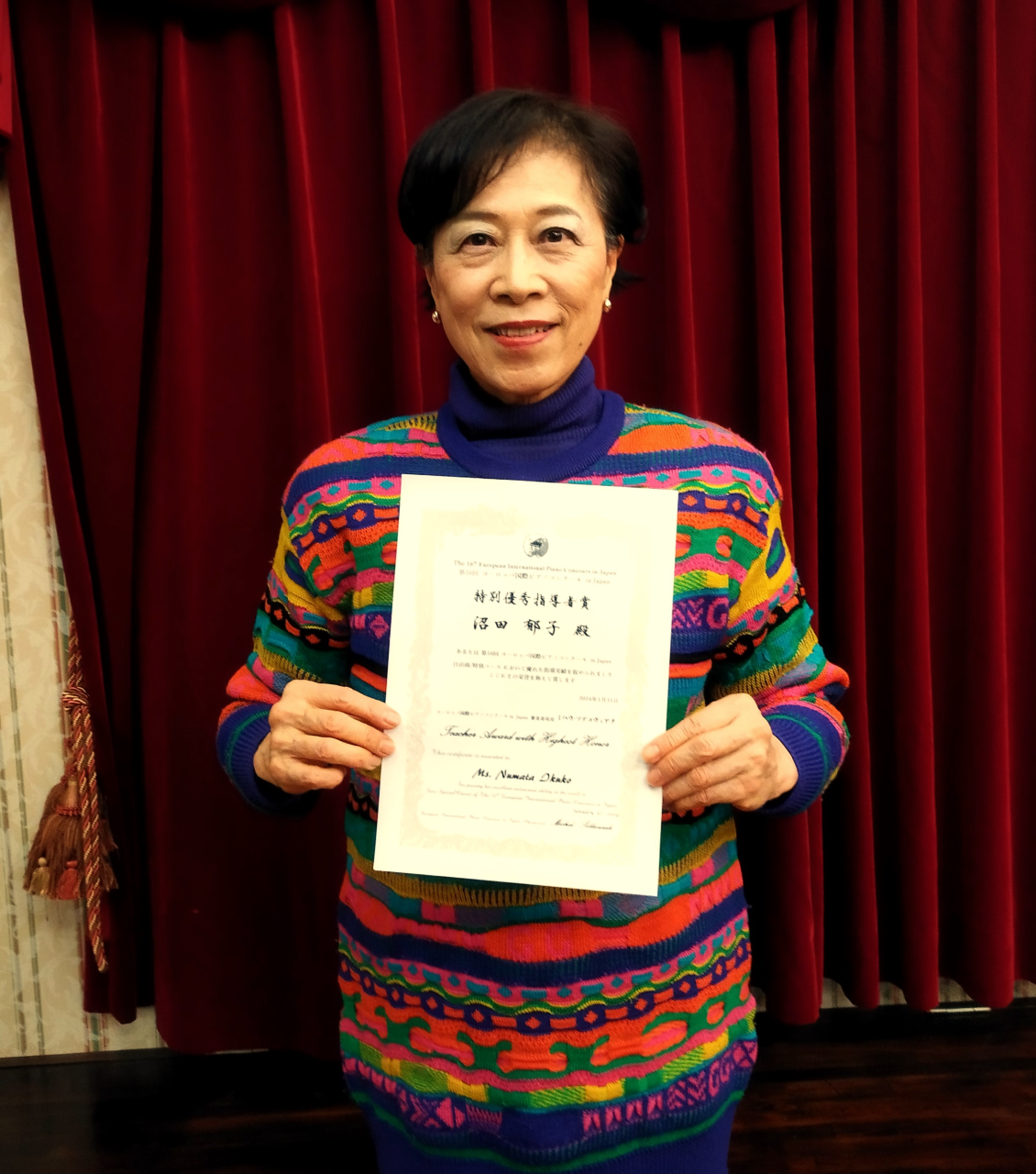 昨年11月、第16回ヨーロッパ国際ピアノコンクール in Japanの全国大会にて安江汐里ちゃん(小4)金賞受賞を称えて特別優秀指導者賞を受賞しました。